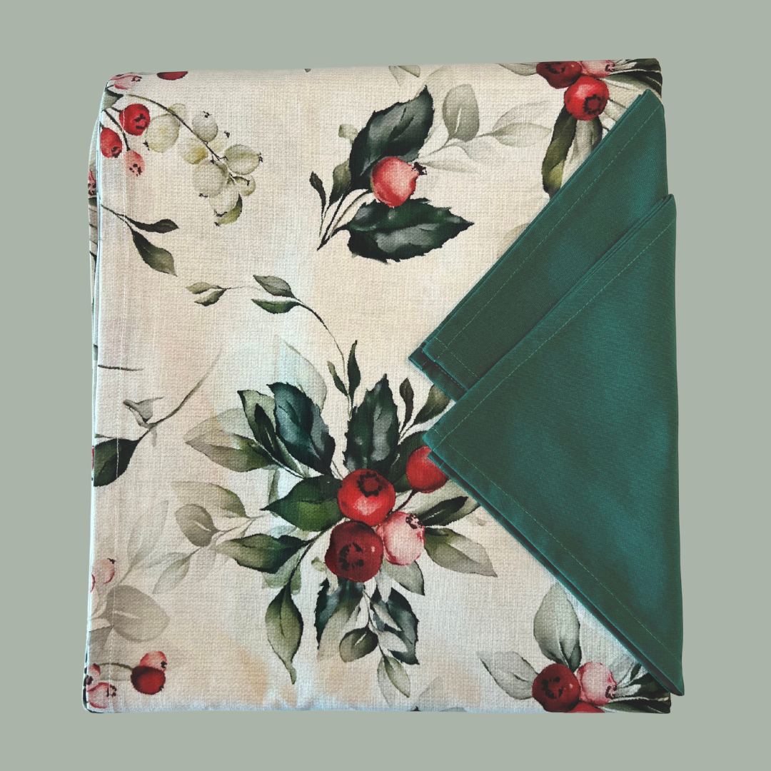 La tovaglia (145x250 cm), impreziosita da motivi natalizi eleganti e raffinati è pensata per donare immediatamente calore e atmosfera alla tua sala da pranzo. Il tessuto in puro cotone garantisce morbidezza e resistenza, ideale per tutto il periodo festivo e per le occasioni più importanti.