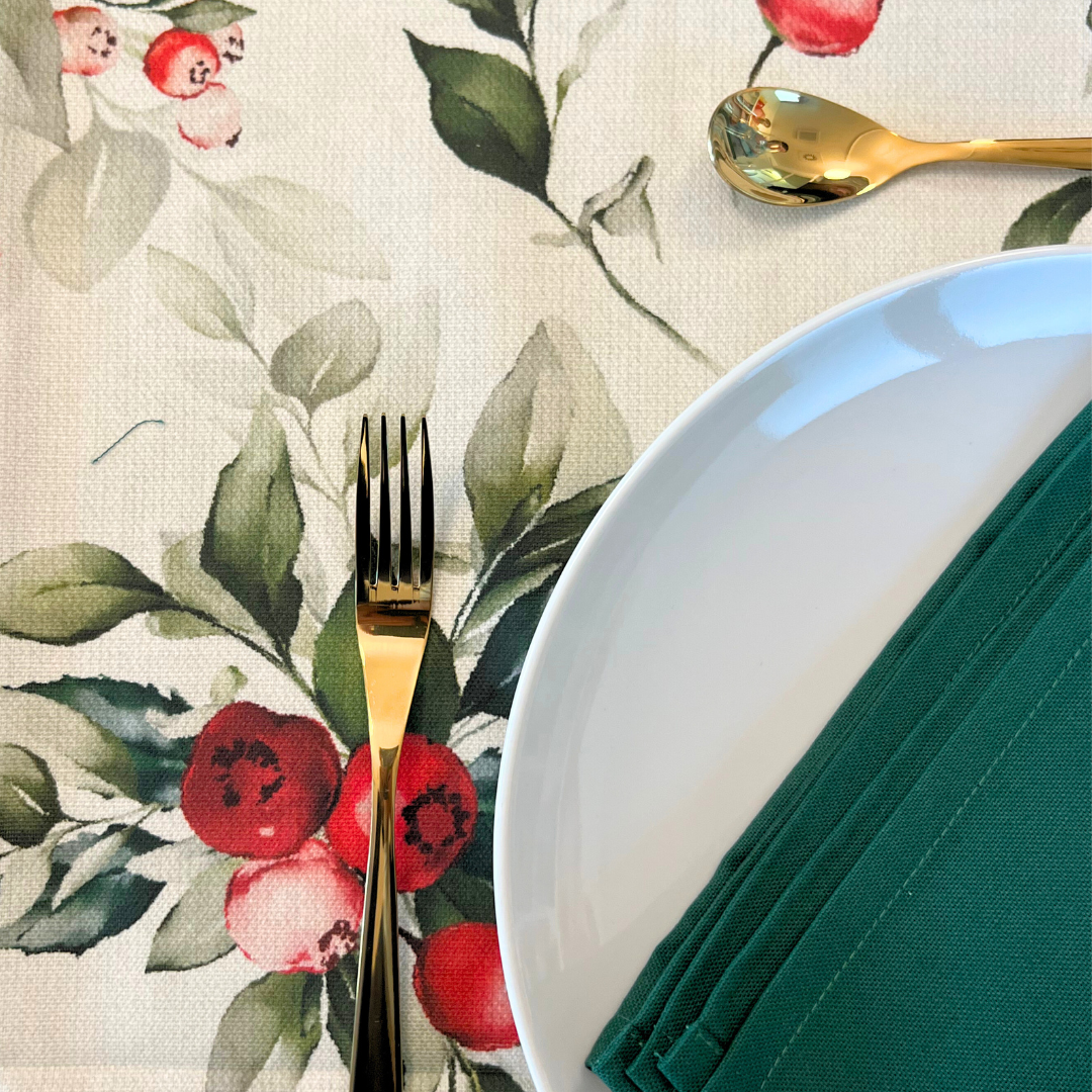 Porta in tavola tutta la magia delle feste con il Set Tovaglia + Tovaglioli a tema natalizio, un prodotto Made in Italy realizzato in 100% cotone di alta qualità, pensato per trasformare le tue festività in un momento ancora più speciale.